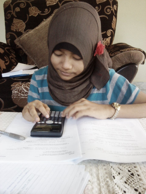 lakonan semata mata . kalkulator tu tak on pom . macam la aku pandai sangat nak kira :D